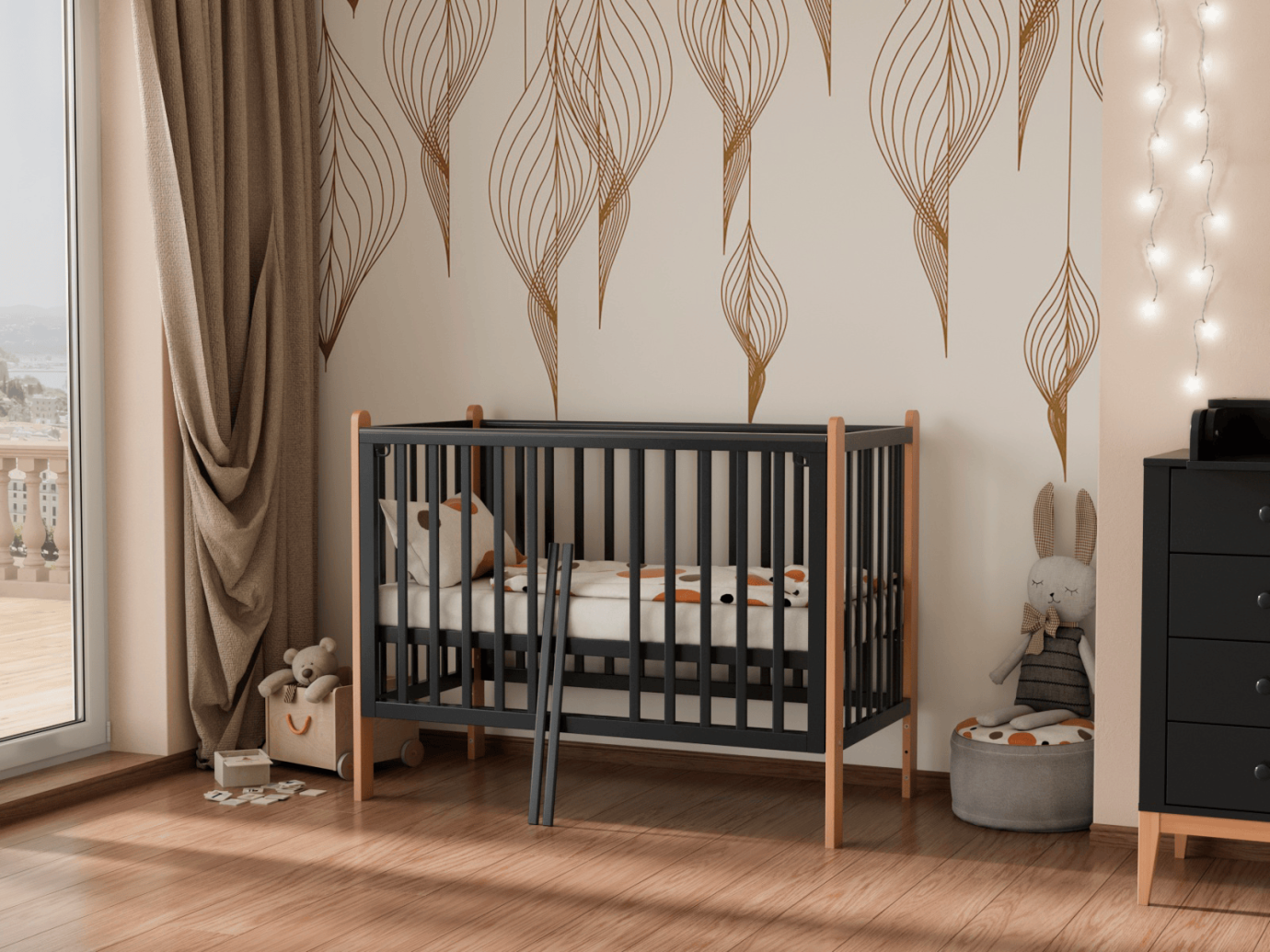 Кроватка Lunna Lika графит/бук