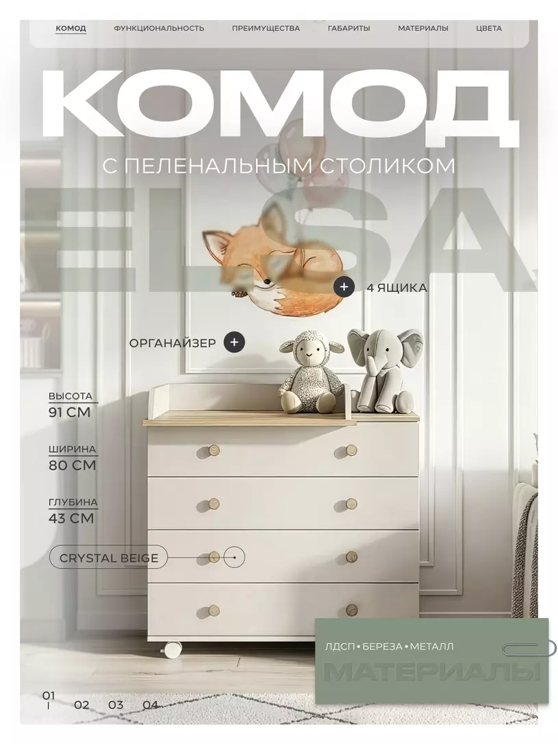 Функциональный пеленальный комод моментально впишется в ваш интерьер благодаря эргономичным деталям и оригинальному исполнению.