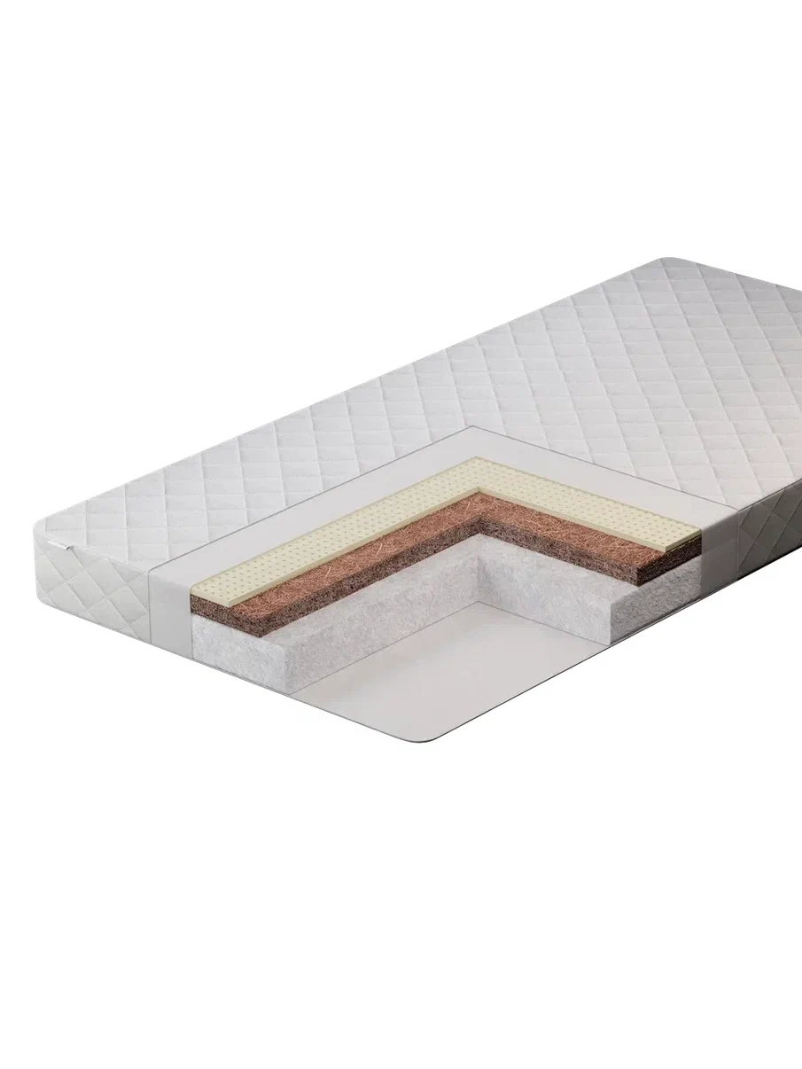 Наполнители: • Холкон — 10 см: эластичный, износостойкий, отлично держит форму и обеспечивает мягкую упругость • Кокосовая койра — 1 см: придает матрасу ортопедическую жесткость и поддерживает осанку • Латекс — 1 см: добавляет комфорт, повышенную упругость и антибактериальные свойства