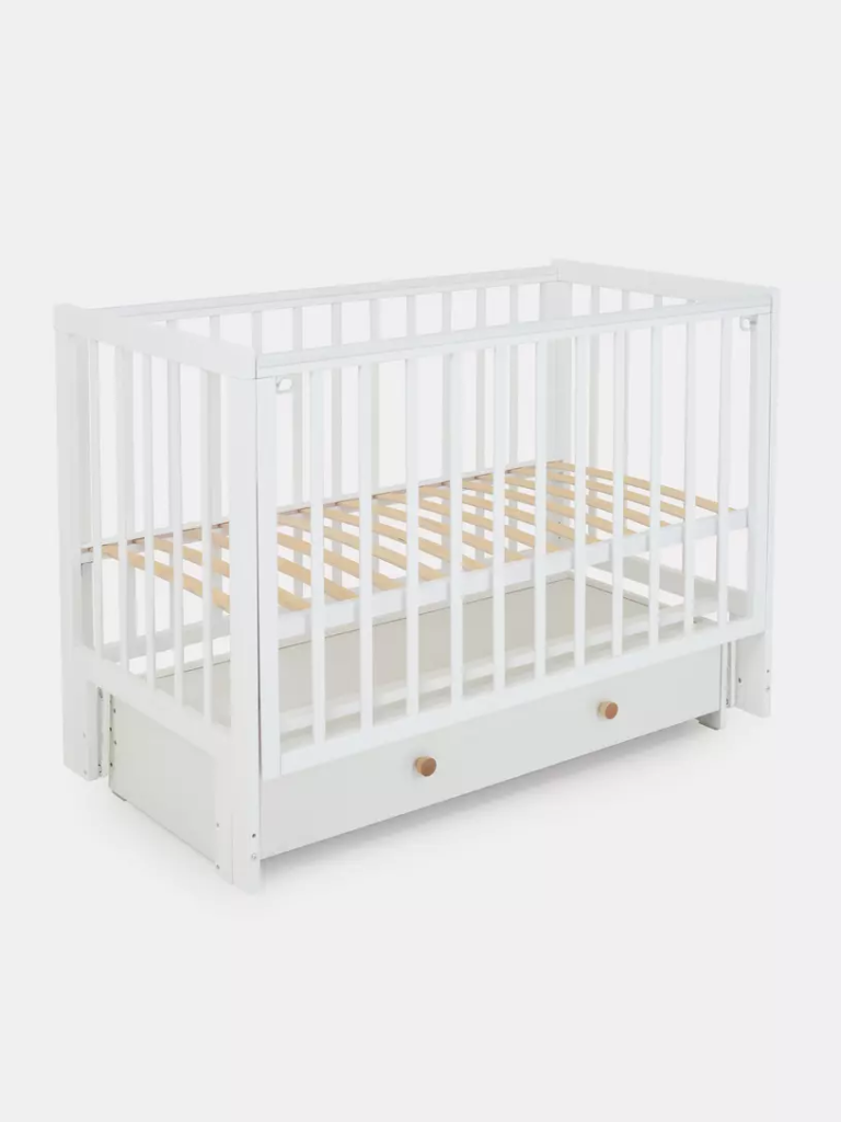 Эта кроватка в стиле скандинавского минимализма сочетает простоту и функциональность. Она оснащена универсальным маятником, опускаемой боковой стенкой, съемной боковой стенкой, пятью положениями ложа и просторным закрытым ящиком для белья. Вашему малышу обеспечен комфортный сон!