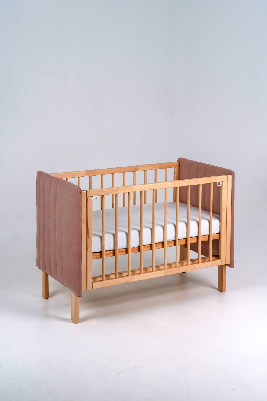 Функциональный апгрейд случился у самой продаваемой модели 2025 - кроватки Софт: долгожданная опускающаяся стенка! Буквально одним движением передняя стенка меняет свое положение или убирается вовсе! Под спальным дном мы также использовали место по максимуму и добавили полочку, которая своими размерами на первых месяцах жизни ребенка может заменить комод! (коробки на фото являются реквизитом и не входят в комплектацию кровати).