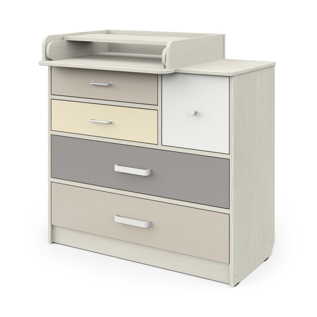 Пеленальный комод Сириус "Norman" с легкосъемным раскладным пеленальным столиком - это большой вместительный комод шириной 92 см с пятью ящиками разного размера, которому нет аналогов на рынке. Ящики выполнены в четырех цветах пастельных тонов, устанавливаются на бесшумные шариковые направляющие. Удобный ящик, расположенный справа от пеленального столика, позволяет держать под рукой еще больше вещей, необходимых при занятиях с новорожденным малышом. Дизайнерские ручки на изделии выгодно подчёркивают внешний вид комода.