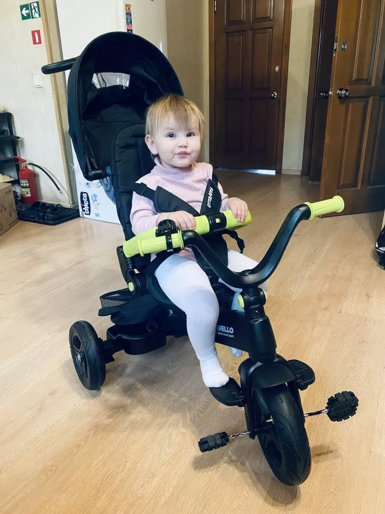 ✔ Колеса PU с протектором. Диаметр переднего - 26 см, задние - 22 см.