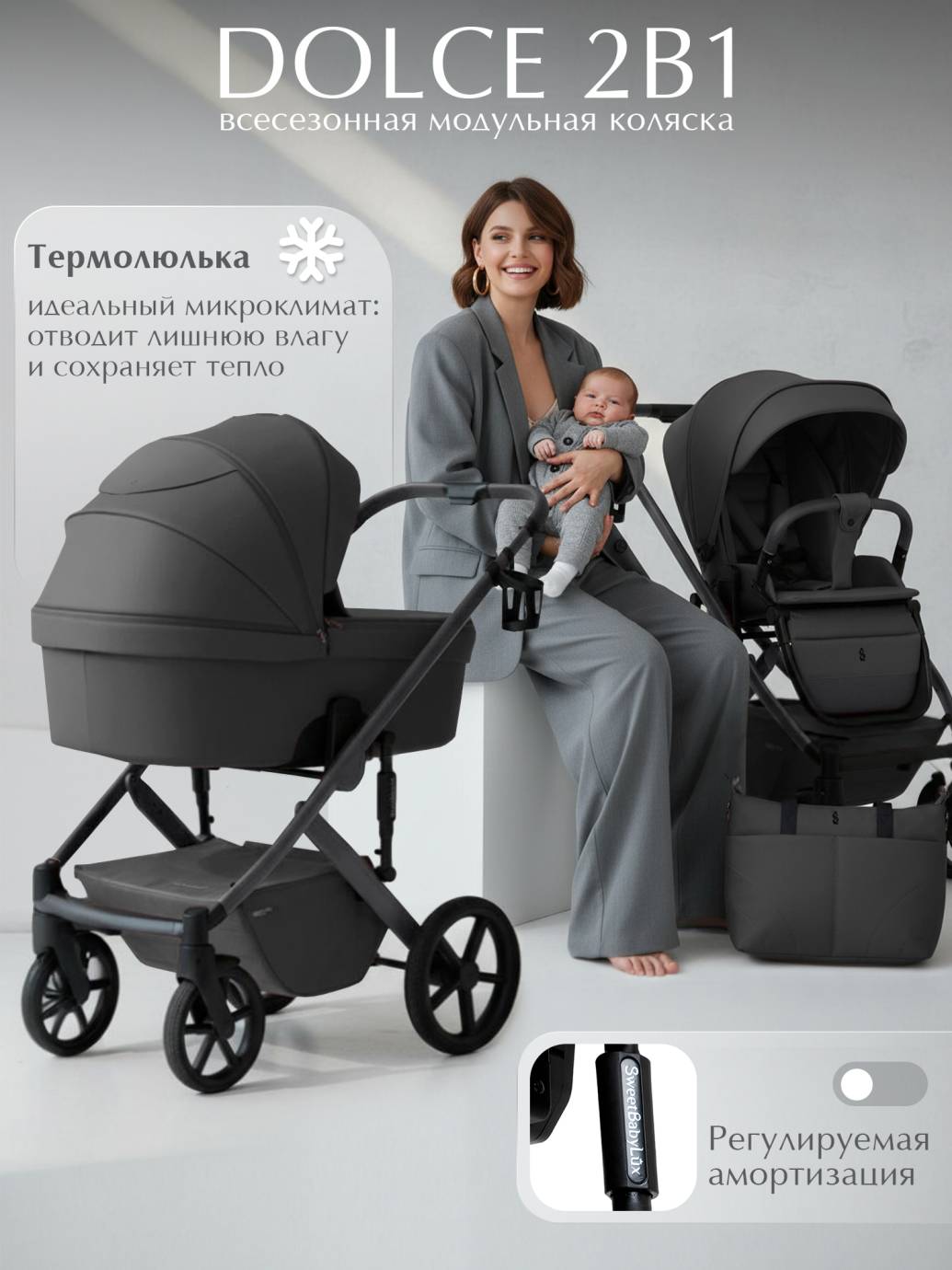 Купить Коляска 2в1 SBL Dolce Dark Grey по выгодной цене в интернет-магазине Оксмаркет с доставкой. Коляска 2в1 SBL Dolce Dark Grey - описание, фото, характеристики. Аксессуары к Коляска 2в1 SBL Dolce Dark Grey. Коляска 2в1 SBL Dolce Dark Grey отзывы покупателей.