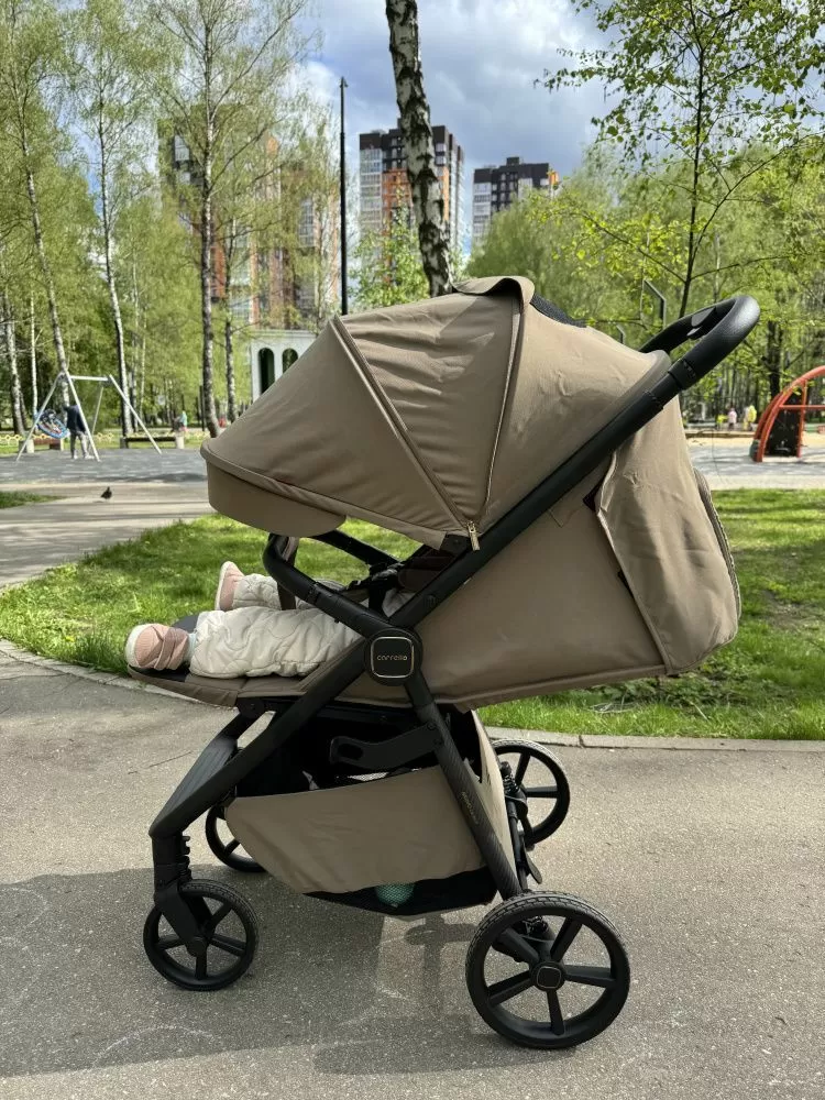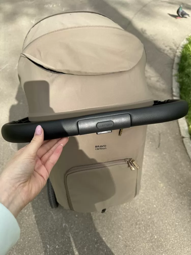 Фактурная и прочная экокожа на бампере и ручке коляски дополняет образ, а изящные акценты расставляет эффектная фурнитура.