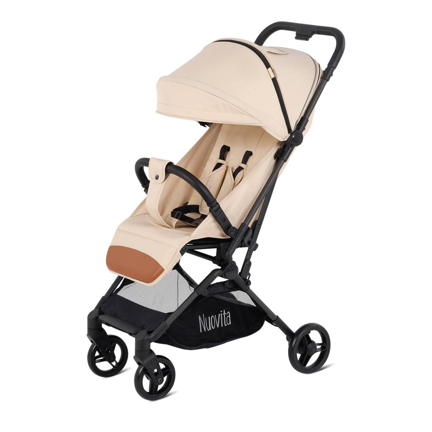 При этом соблюдены все требования безопасности и комфорта, которые выдвигаются к коляске для ребенка: от выпадения и выскальзывания защищает съёмный бампер, удобное положение ног ребенка гарантирует подножка, которая имеет два положения, спинка тоже регулируется (от 115 ° до 175 °). И, разумеется, важным фактором являются ремни безопасности — у Nuovita Note они 5-ти точечные с накладками из мягкого материала.